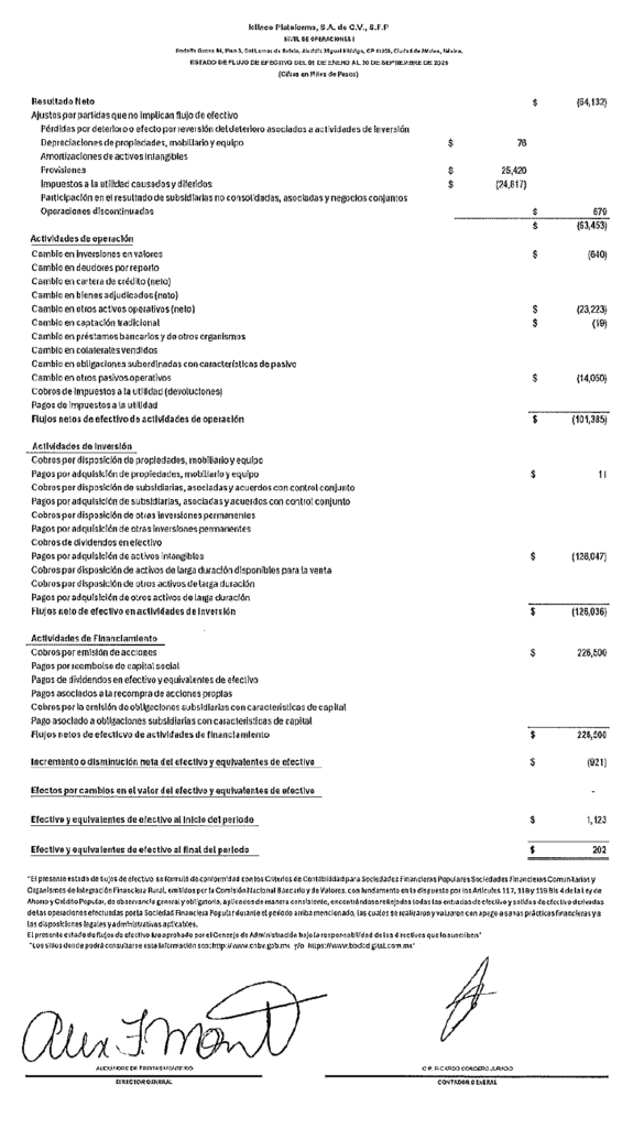 ESTADO DE FLUJO DE EFECTIVO HASTA SEPT 2025