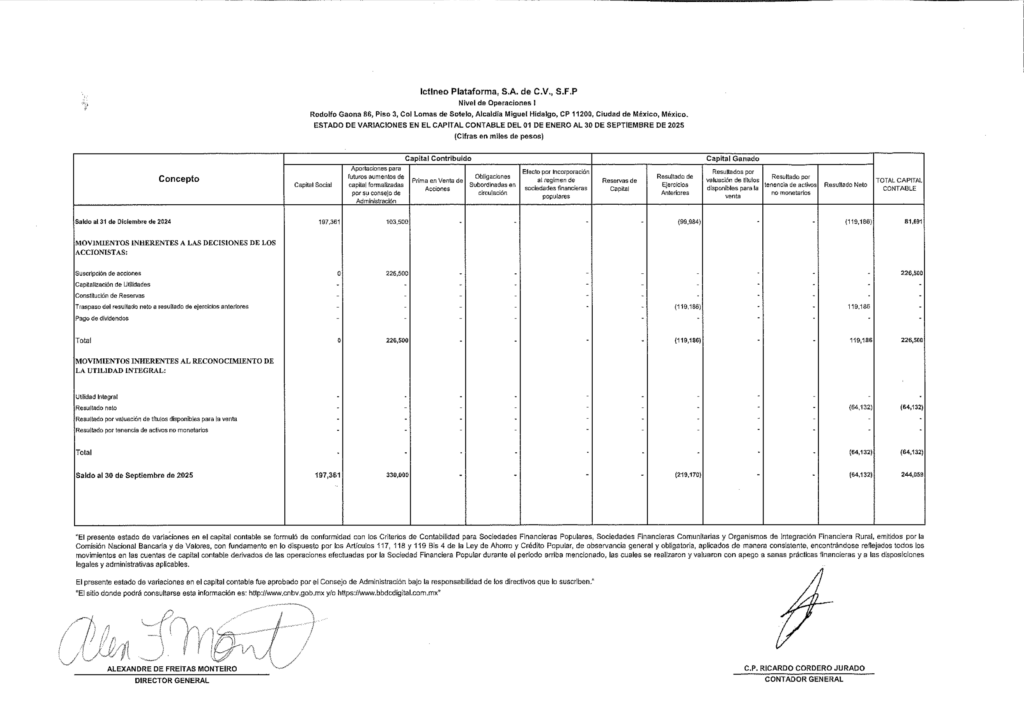 ESTADO DE VARIACIONES EN EL CAPITAL CONTABLE HASTA SEPT 2025
